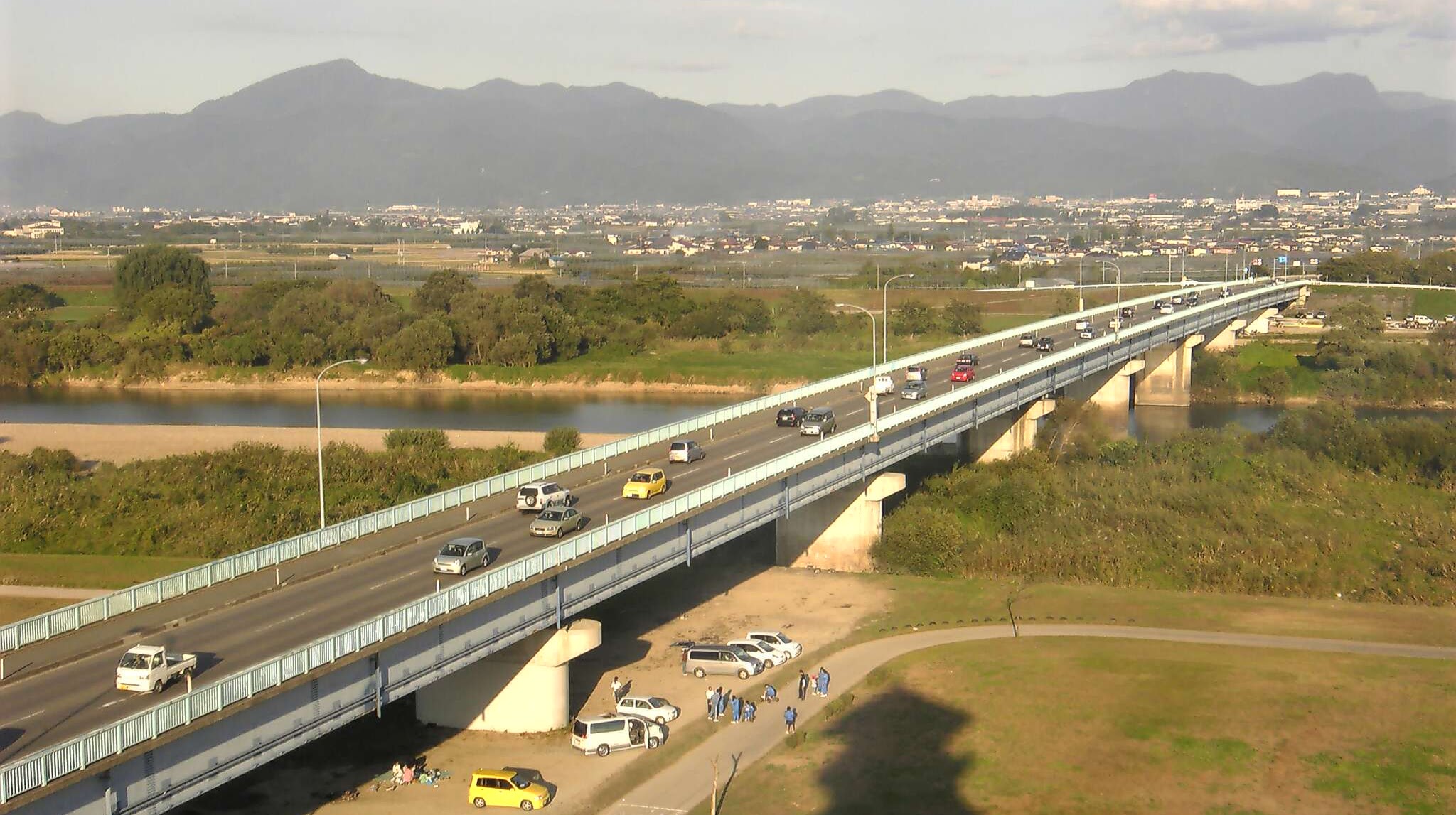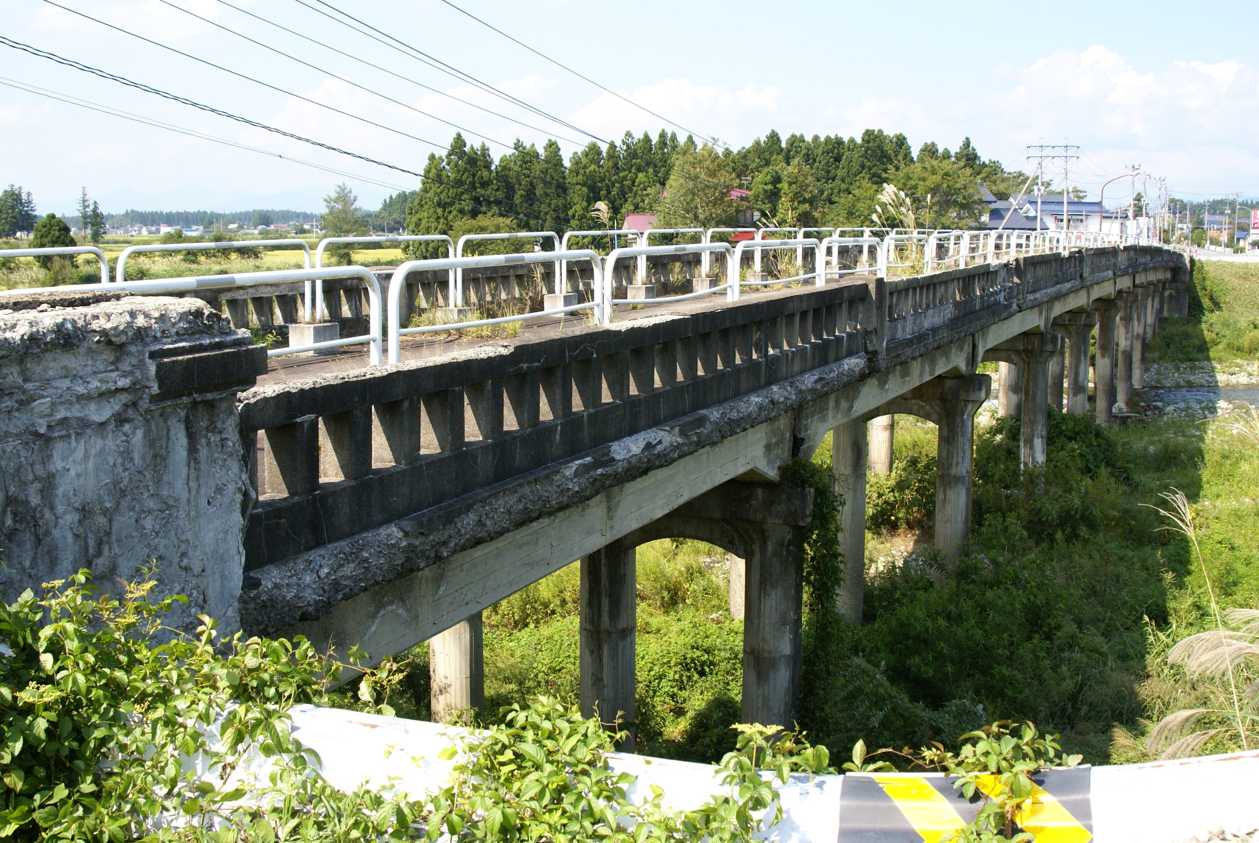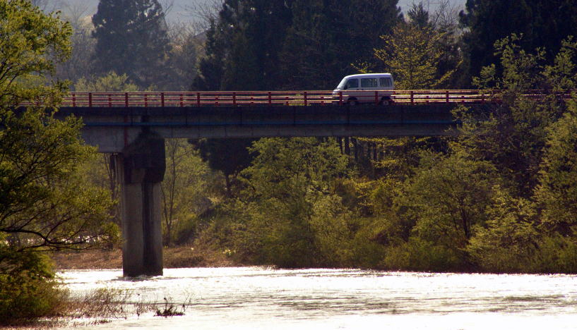 山形県西村山郡河北町 ❚ 初代は鉄道の橋 最上川に架かる大きな橋。左岸の河北町と右岸の東根市を結ぶ大動脈国道287号の一部。初代の橋は少し下流に架けられていた「道海橋」。東根市神町と河北町道海を結んでいた谷地軌道(愛称:…